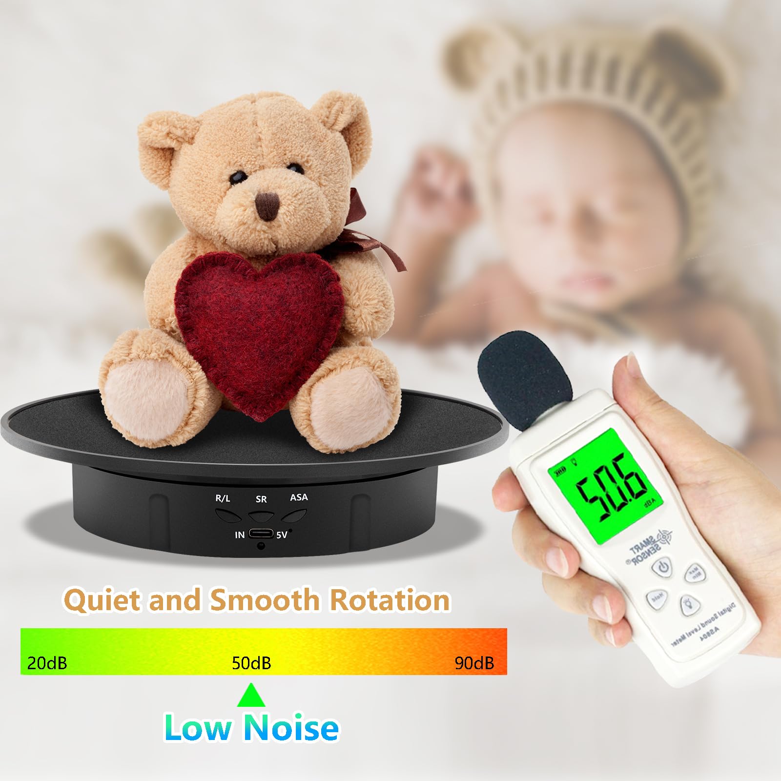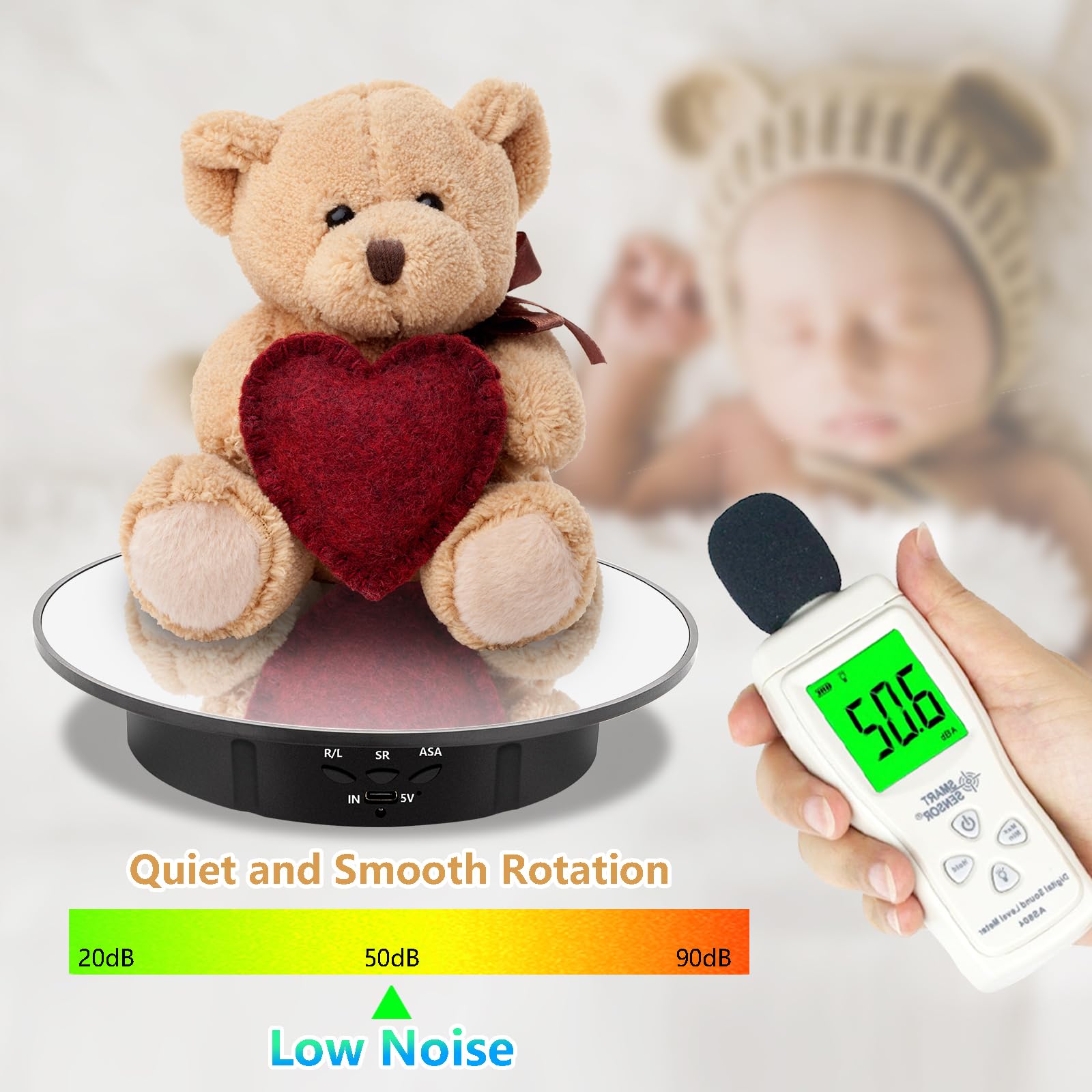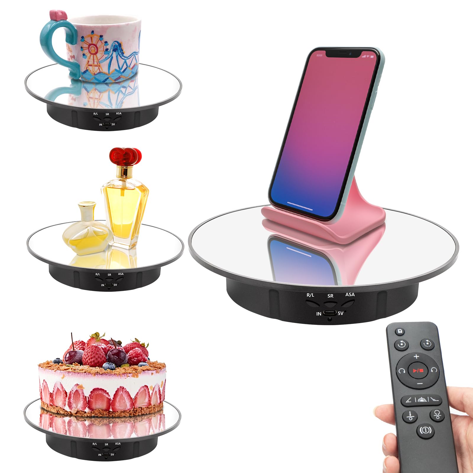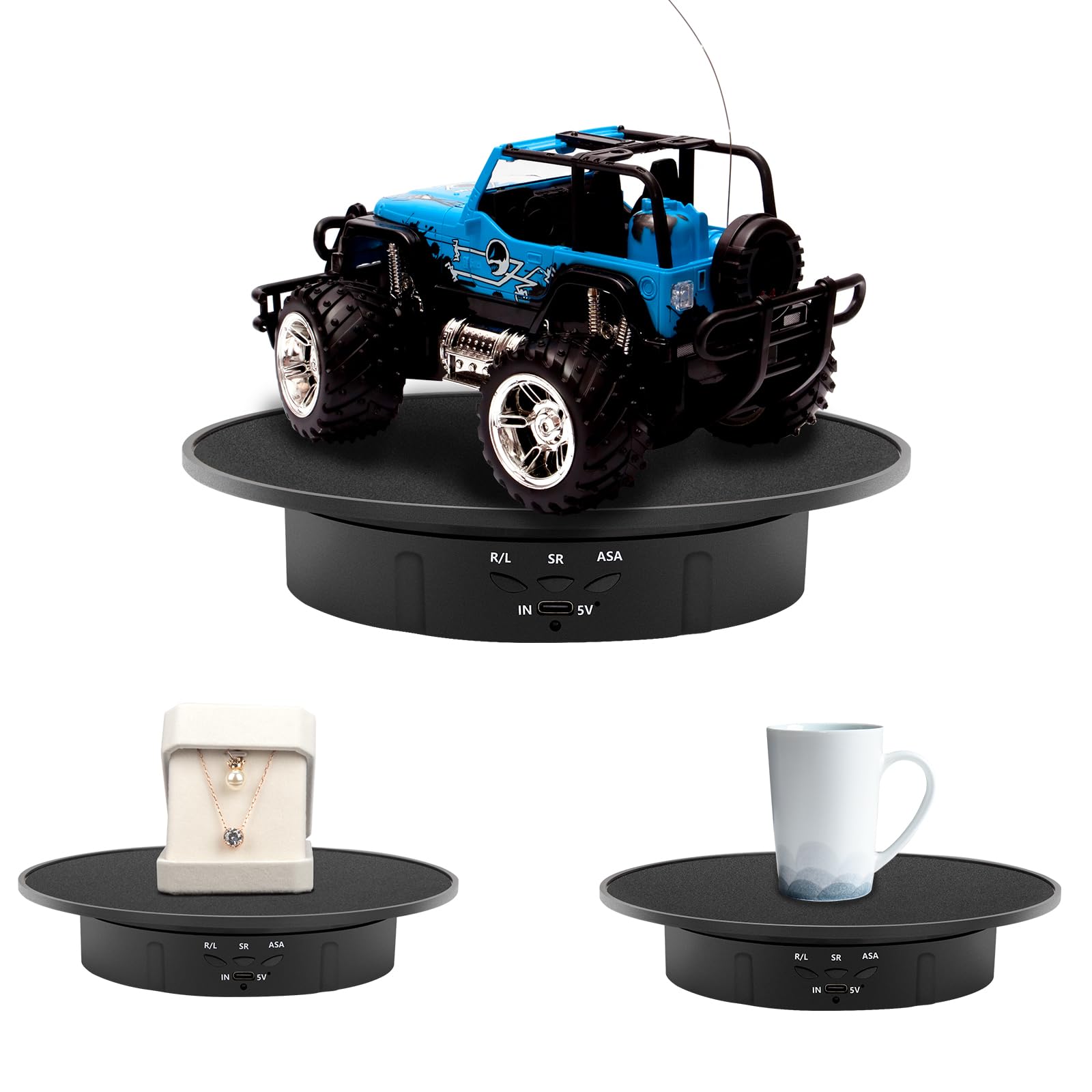 • Appropriate Electric Display Stand- 7.9" top tray with black velvet, anti-slip and dirt-resistant. The silent motor rotates with extremely low noise, making it perfectly suitable for video shooting and product display