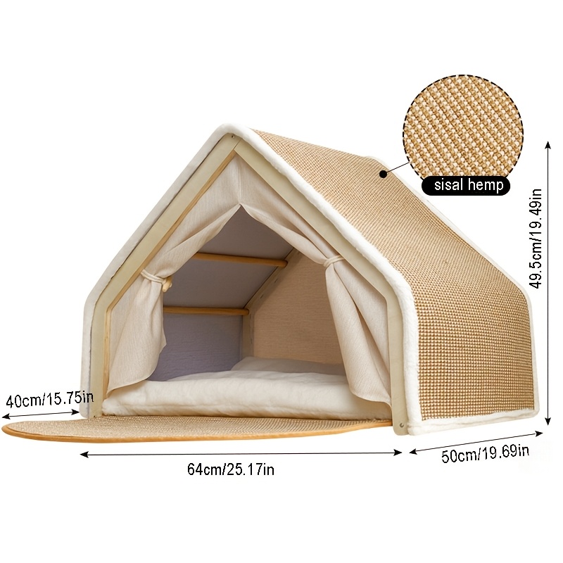 Extra Large Cat Villa - Semi-Enclosed Shell Design with Door Curtain & Sunshade, Spacious Pet Nest f